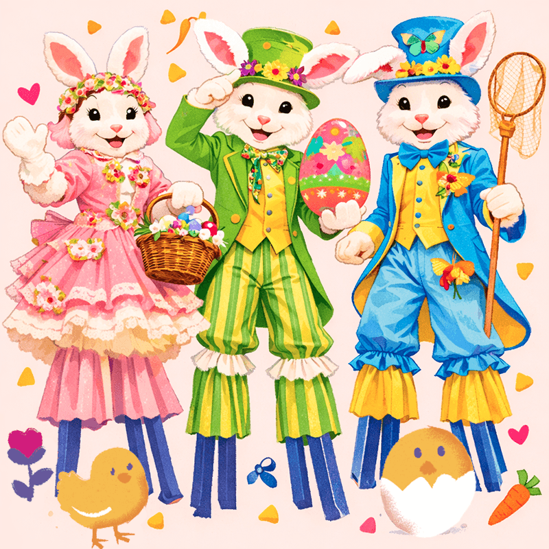 Majestueux et amusants, ces lapins de Pâques XXL parcourent le quartier pour offrir un moment magique, poétique et festif au plus près du public.
